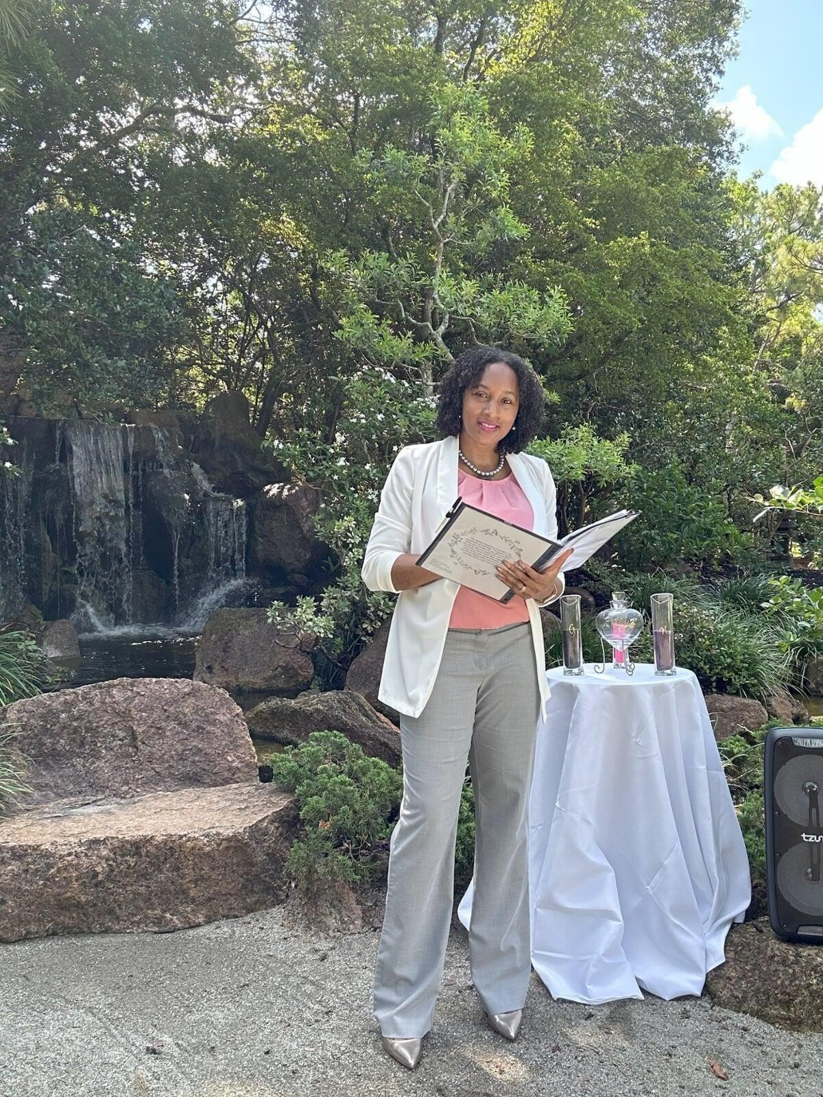 Hi, I’m Berjoh Elise Fullilove, an ordained minister and Florida notary public, and I’m honored to help couples celebrate one of life’s most beautiful moments—marriage. As someone happily married for 15 years, I understand the importance of this milestone and the love it represents. Whether you dream of an intimate elopement or a ceremony surrounded by friends and family, I am here to make your special day as meaningful as possible. Serving the Treasure Coast area of Florida, I offer personalized marriage solemnization services to suit your unique vision. It brings me great joy to be a part of your journey toward everlasting love. Call or visit my booking site today to schedule your ceremony—I can’t wait to help you start your happily ever after!